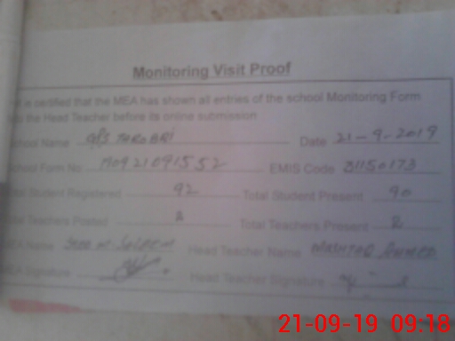 | EMIS Code: 31150173 | Name of School: GPS TARUBRI | |||