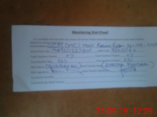 | Attendance Register | Head Teacher | MEA with School | Visit Proof |