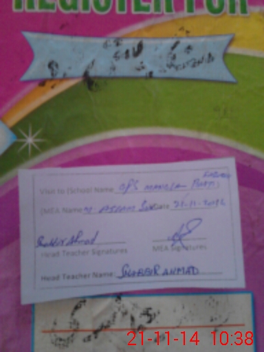 | Attendance Register | Head Teacher | MEA with School | Visit Proof |