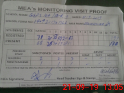 | Attendance Register | Head Teacher | MEA with School | Visit Proof |