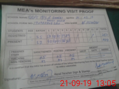 | Certified that this School was Inspected by the Undersigned MEA/DMO Today and the Information Stated Above is as Per Record. | |||||