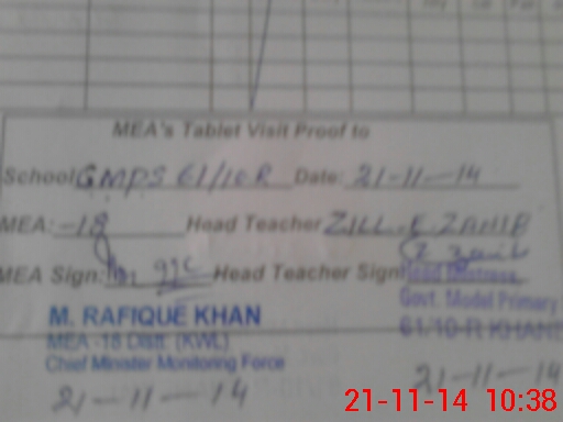 | Certified that this School was Inspected by the Undersigned MEA/DMO Today and the Information Stated Above is as Per Record. | |||||