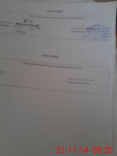 | Attendance Register | Head Teacher | MEA with School | Visit Proof |