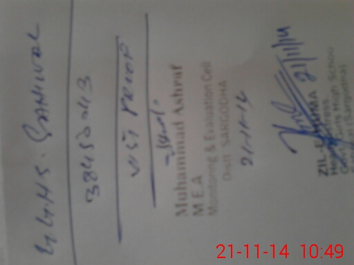 | District: SARGODHA | Tehsil: SAHIWAL | Markaz: SECONDARY-WING | Level: High | |