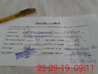 | Monitoring Date: 23-09-2019 | Start Time: 23-09-2019 08:03 AM | End Time: 23-09-2019 09:17 AM | Name of MEA: ZM**** Ak**** | |