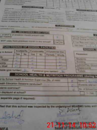 | School Visited by School Health & Nutrition Supervisor (No. of Visits) | Name1: | Hamara Javid | Name2: | ||