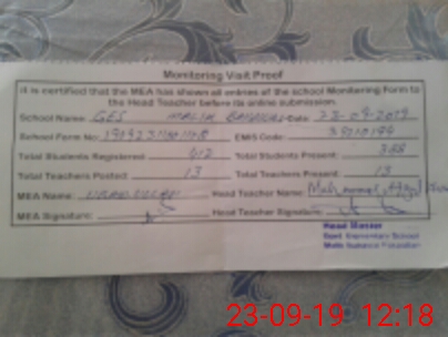 | Attendance Register | Head Teacher | MEA with School | Visit Proof |