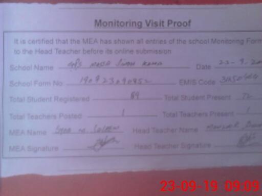 | Attendance Register | Head Teacher | MEA with School | Visit Proof |