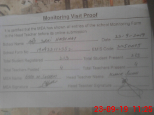 | EMIS Code: 31150075 | Name of School: GPS JORKI HASHMAT | |||