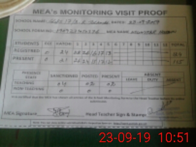 | Attendance Register | Head Teacher | MEA with School | Visit Proof |