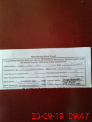 | Attendance Register | Head Teacher | MEA with School | Visit Proof |
