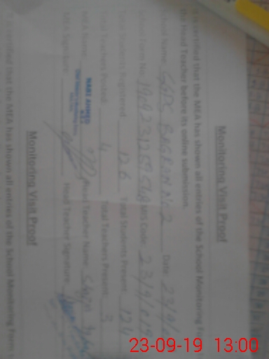 | Certified that this School was Inspected by the Undersigned MEA/DMO Today and the Information Stated Above is as Per Record. | |||||