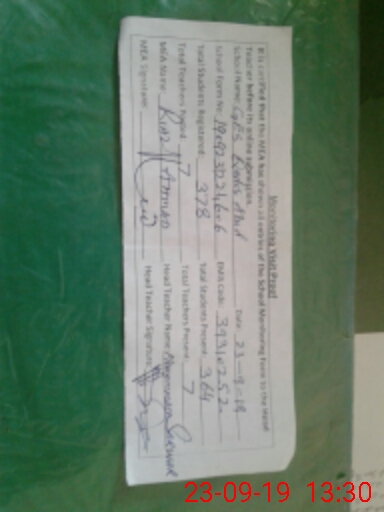 | Attendance Register | Head Teacher | MEA with School | Visit Proof |