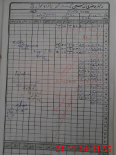 | CNIC | Full Name | Designation | R/C | Absence During Last Calender Month |