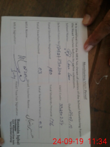 | Certified that this School was Inspected by the Undersigned MEA/DMO Today and the Information Stated Above is as Per Record. | |||||