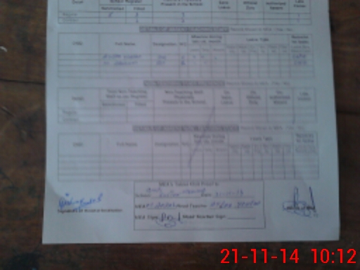 | Monitoring Date: 21-11-2014 | Start Time: 21-11-2014 09:59 AM | End Time: 21-11-2014 10:13 AM | Name of MEA: M.Af**** (R**** | |
