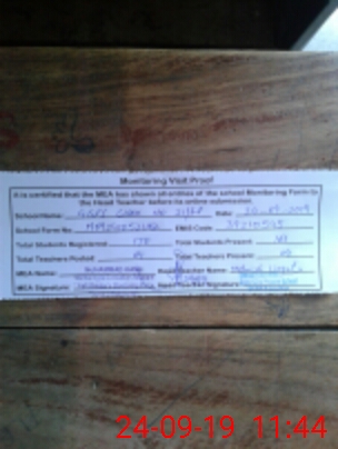 | Attendance Register | Head Teacher | MEA with School | Visit Proof |