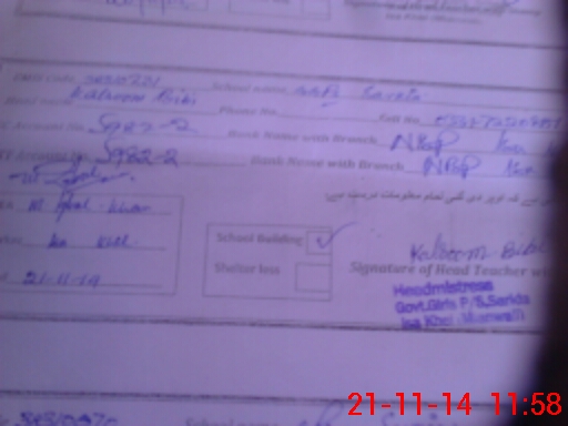 | Name: Is**** Ja**** Designation: (School Headmaster's/Headmistress's) PST Phone/Cell Number: 03**** |