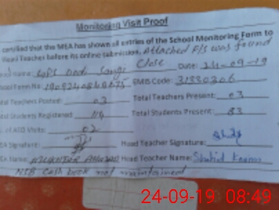| Certified that this School was Inspected by the Undersigned MEA/DMO Today and the Information Stated Above is as Per Record. | |||||