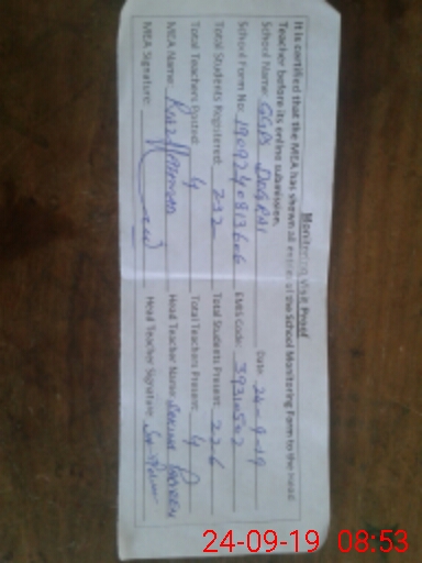 | Certified that this School was Inspected by the Undersigned MEA/DMO Today and the Information Stated Above is as Per Record. | |||||