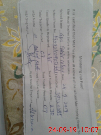 | Certified that this School was Inspected by the Undersigned MEA/DMO Today and the Information Stated Above is as Per Record. | |||||