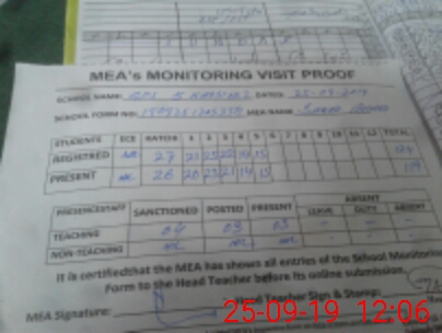 | Attendance Register | Head Teacher | MEA with School | Visit Proof |