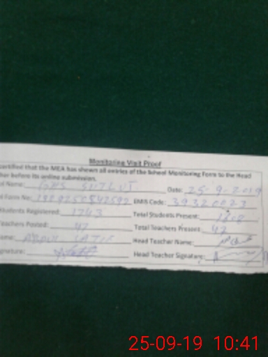 | Name: Ma**** Al**** Di**** Designation: (School Headmaster's/Headmistress's) Principle Phone/Cell Number: 03**** |