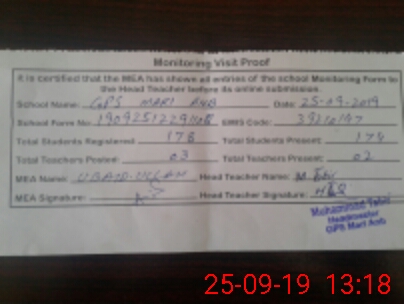 | Certified that this School was Inspected by the Undersigned MEA/DMO Today and the Information Stated Above is as Per Record. | |||||