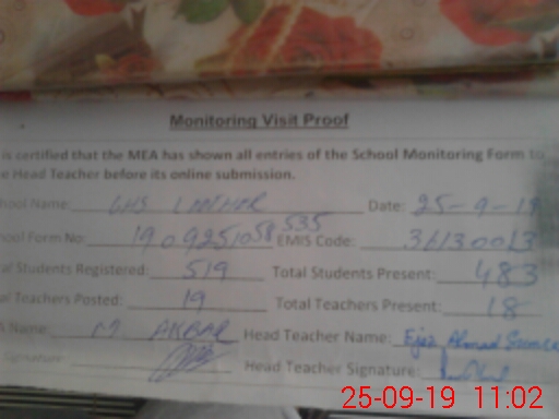 | Certified that this School was Inspected by the Undersigned MEA/DMO Today and the Information Stated Above is as Per Record. | |||||