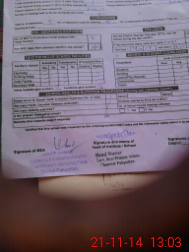 | Attendance Register | Head Teacher | MEA with School | Visit Proof |