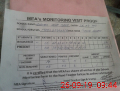 | Certified that this School was Inspected by the Undersigned MEA/DMO Today and the Information Stated Above is as Per Record. | |||||