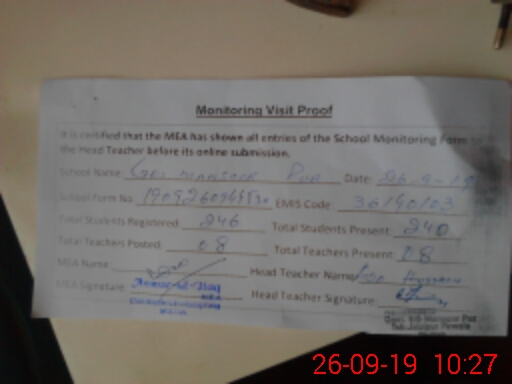 | Certified that this School was Inspected by the Undersigned MEA/DMO Today and the Information Stated Above is as Per Record. | |||||