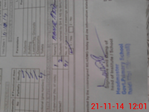 | School Visited by School Health & Nutrition Supervisor (No. of Visits) | 1 | Name1: | Aamir Aziz | Name2: | |