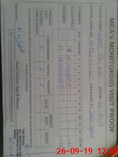 | Certified that this School was Inspected by the Undersigned MEA/DMO Today and the Information Stated Above is as Per Record. | |||||