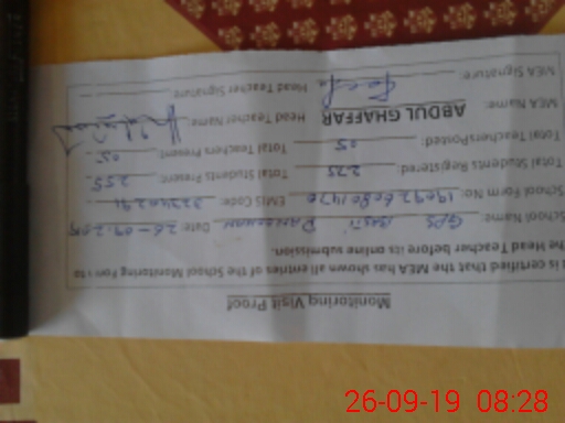 | Certified that this School was Inspected by the Undersigned MEA/DMO Today and the Information Stated Above is as Per Record. | |||||