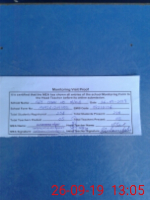 | Attendance Register | Head Teacher | MEA with School | Visit Proof |