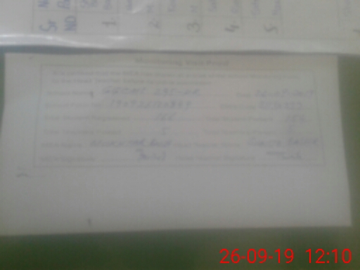 | Monitoring Date: 26-09-2019 | Start Time: 26-09-2019 11:06 AM | End Time: 26-09-2019 12:12 PM | Name of MEA: Mu**** ah**** BN**** 29 | |