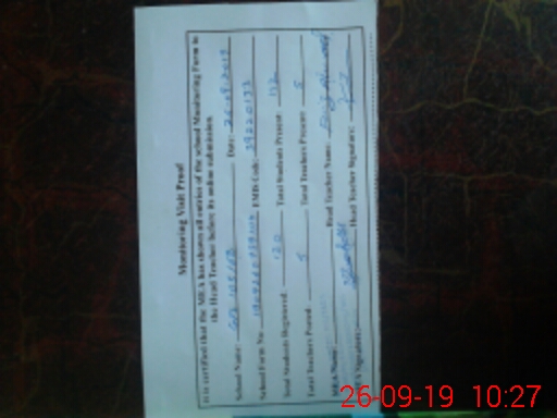 | Attendance Register | Head Teacher | MEA with School | Visit Proof |