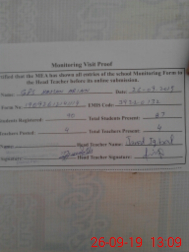 | Certified that this School was Inspected by the Undersigned MEA/DMO Today and the Information Stated Above is as Per Record. | |||||