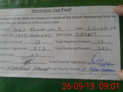 | Certified that this School was Inspected by the Undersigned MEA/DMO Today and the Information Stated Above is as Per Record. | |||||