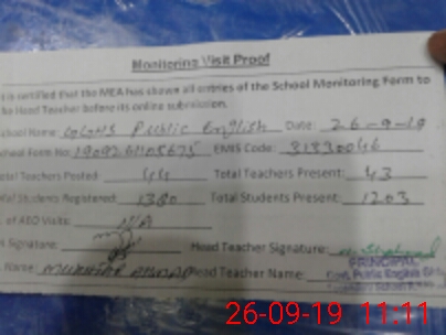 | Certified that this School was Inspected by the Undersigned MEA/DMO Today and the Information Stated Above is as Per Record. | |||||