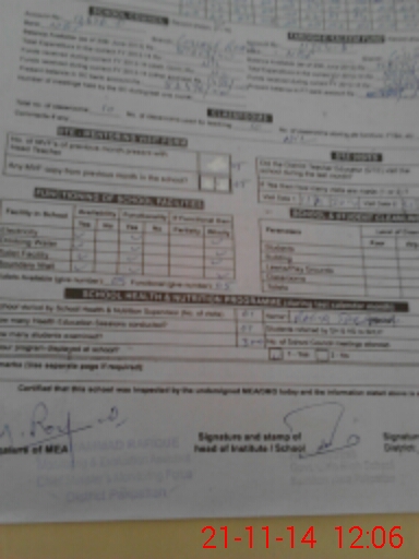 | Certified that this School was Inspected by the Undersigned MEA/DMO Today and the Information Stated Above is as Per Record. | |||||