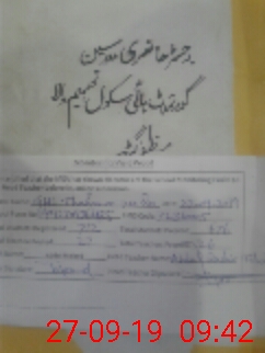 | Name: ZA**** HU**** Designation: (School Headmaster's/Headmistress's) SHM Phone/Cell Number: 03**** |