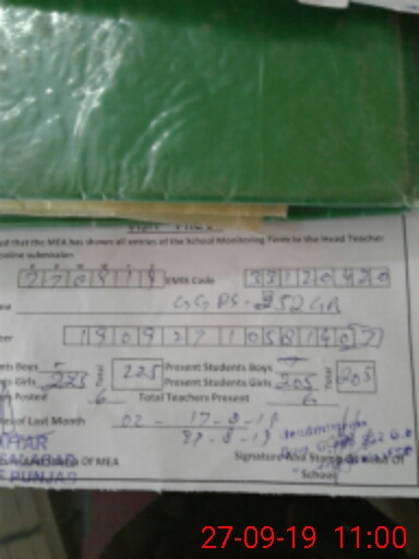 | EMIS Code: 33120420 | Name of School: GGPS CHAK 352 GB LUNDIANWALA | |||