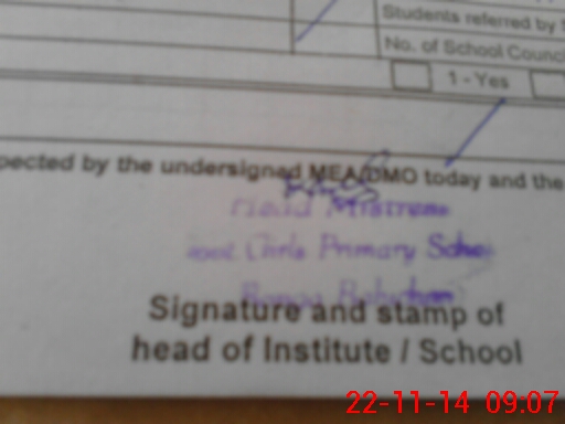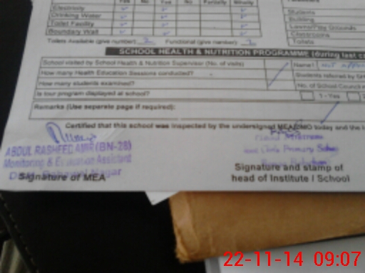 | Attendance Register | Head Teacher | MEA with School | Visit Proof |