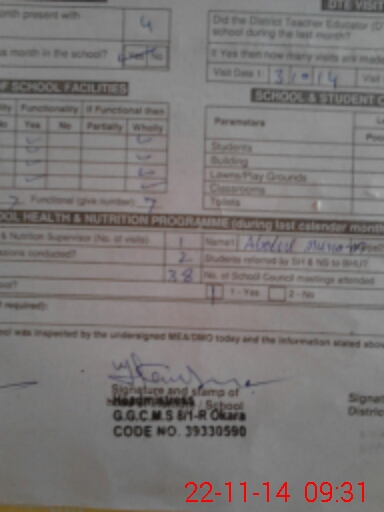 | Certified that this School was Inspected by the Undersigned MEA/DMO Today and the Information Stated Above is as Per Record. | |||||