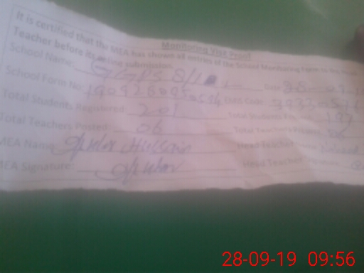| Attendance Register | Head Teacher | MEA with School | Visit Proof |