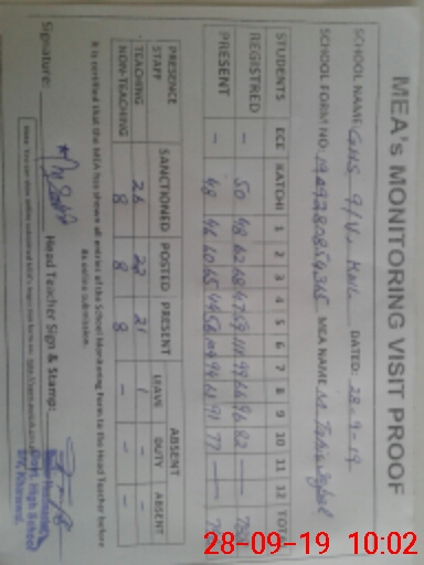 | Monitoring Date: 28-09-2019 | Start Time: 28-09-2019 08:54 AM | End Time: 28-09-2019 10:18 AM | Name of MEA: M.Ta**** Iq**** (S**** | |