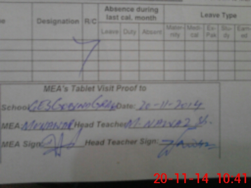 | Attendance Register | Head Teacher | MEA with School | Visit Proof |
