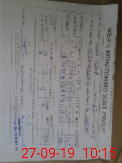 | Monitoring Date: 27-09-2019 | Start Time: 27-09-2019 08:06 AM | End Time: 27-09-2019 10:22 AM | Name of MEA: GH**** AB**** | |
